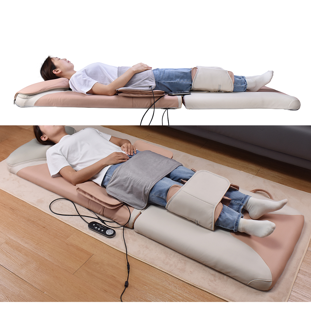 This massage mattress. It is equipped with a massage area that fits the curve of the waist, which can accurately locate the muscles in the waist. When in use, the mattress can act on the waist in various ways, such as gentle vibrations that can penetrate deep into the muscles, promote blood circulation in the waist, and effectively relieve muscle tension and soreness; Partial area pressure massage, like a pair of strong and gentle hands, compresses and relaxes the waist, helping to release lumbar pressure and allowing the waist to deeply relax and repair after prolonged sitting or fatigue.