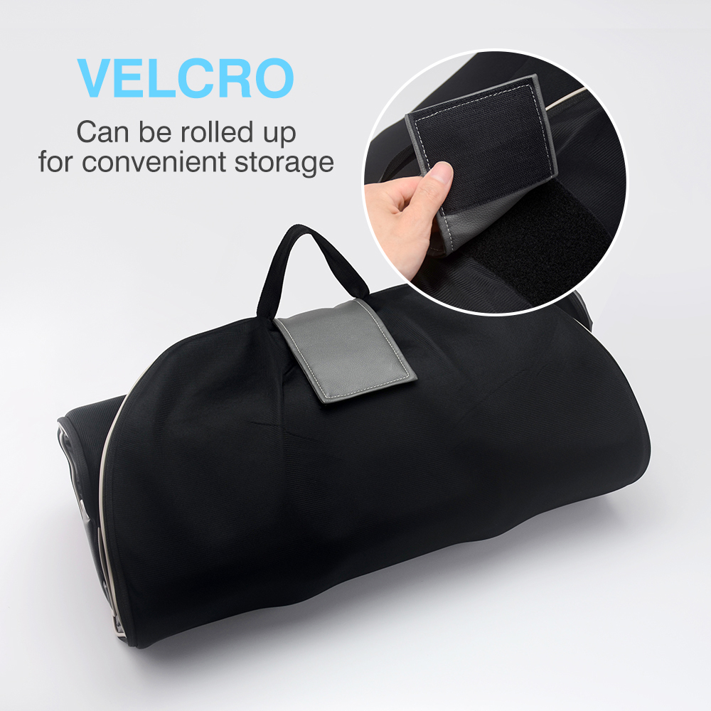 massage mattress, neatly rolled up and stored in a sleek black storage bag after use, highlighting its excellent portability and convenience. The bag is made of durable, high-quality fabric, ensuring the mattress remains well-protected during storage or transportation. It features a sturdy handle for easy carrying and a secure Velcro patch to keep the bag firmly closed. This compact design makes it effortless to store the massage mattress in a closet or take it along on trips, allowing you to enjoy a relaxing massage anytime, anywhere.