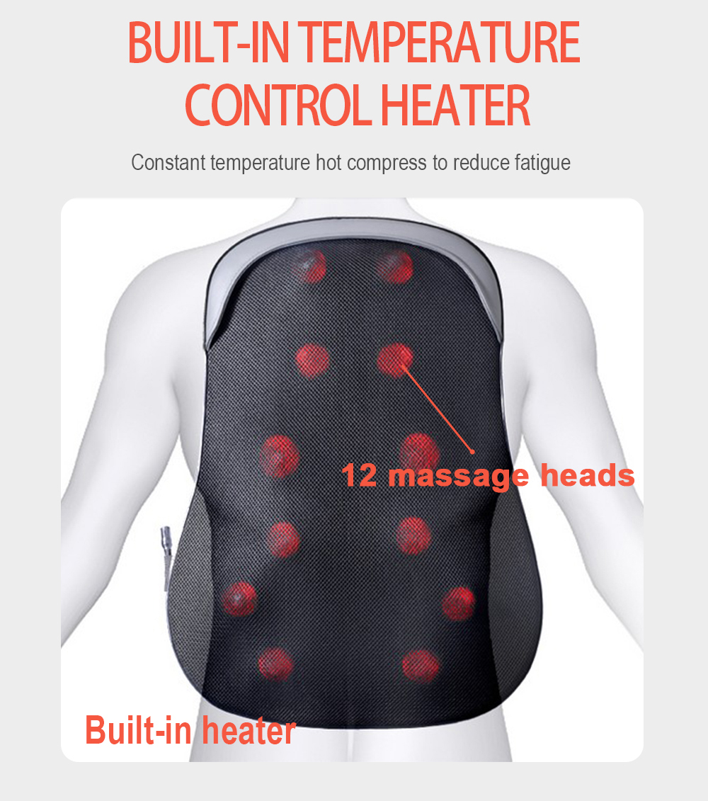 Back Massager with Heat Larger size: 55.5*40*13.5 cm, 13.5cm longer than ordinary massage pillows. Our back massager with heat provides the necessary warmness to ease muscle tension and stress. Heated to body temperature (122°F / 50°C) with overheat protection, this back massager with heat provides a comfortable deep tissue kneading massage.